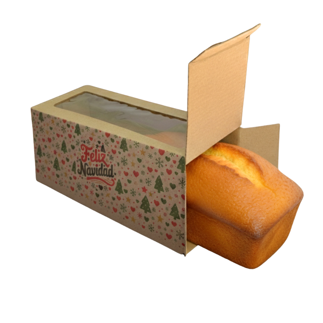 Llega la temporada más linda del año… ¡y también tu nuevo packaging navideño! Caja de cartón rectangular con visor, con un diseño estampado especial Navidad que hace que cualquier budín luzca festivo desde el primer vistazo.