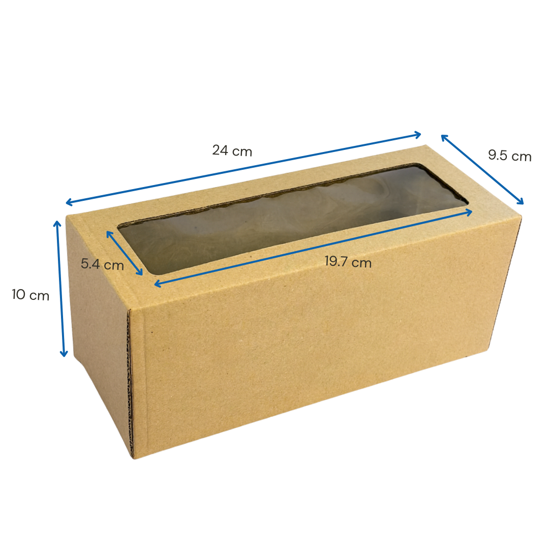 Con medidas de 24x10x9.5 cm, es el tamaño perfecto para budines caseros, artesanales o premium. El visor amplio permite mostrar el producto sin abrir la caja, elevando la presentación y facilitando la venta directa o como regalo.