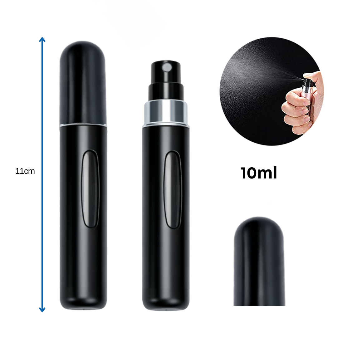 El decant de perfume recargable de 10 ml es una opción práctica y funcional para transportar perfumes de manera cómoda y segura. Su mayor capacidad lo hace ideal para quienes buscan llevar su fragancia por más tiempo sin ocupar espacio innecesario.