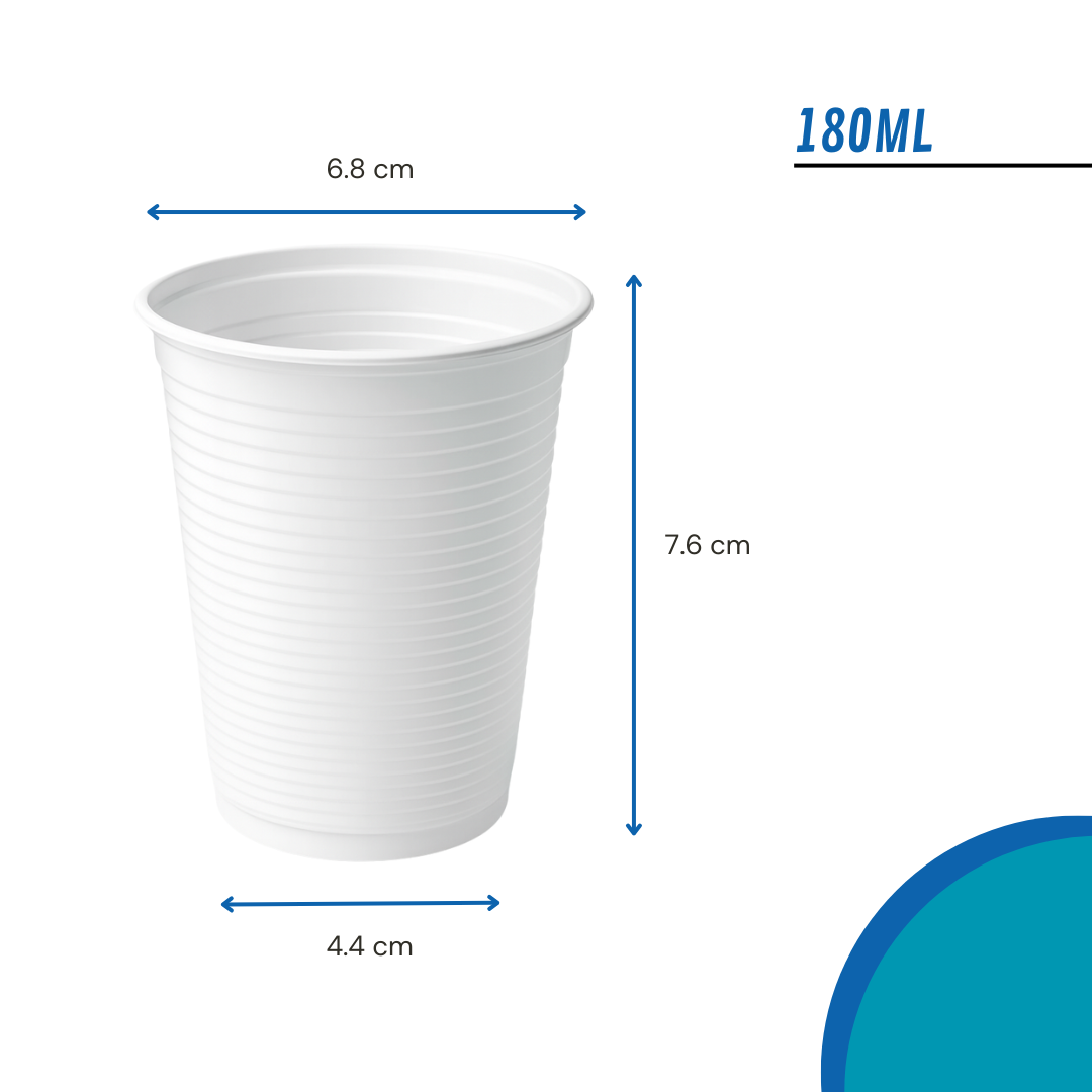 Con una capacidad de 180 ml, es liviano, resistente y cómodo para servir agua, jugos, degustaciones y más. Su color blanco aporta una presentación limpia y prolija.